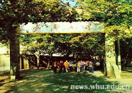 “国立武汉大学”六个字最早出现在20世纪30年代的武昌街道口的木牌坊上。1928年学校正式定名为国立武汉大学,李四光、叶雅各等人择定武昌郊外的珞珈山一带作为新校址。