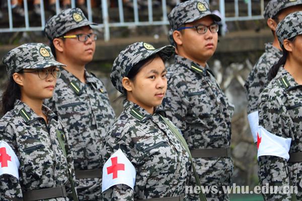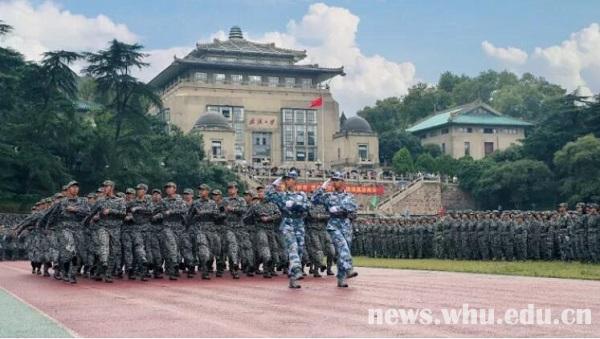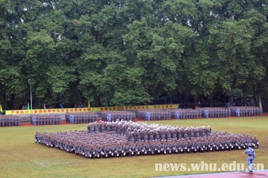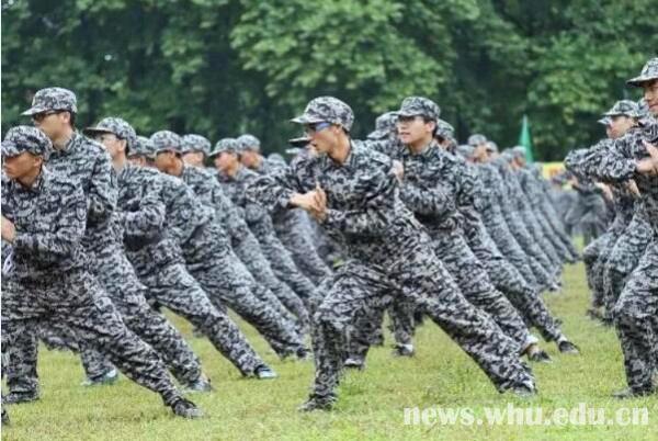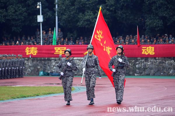 就算是濛濛细雨,也浇灭不了新生们对会操的期待。军歌嘹亮,口号铿锵,步伐一致,令人心潮澎湃。